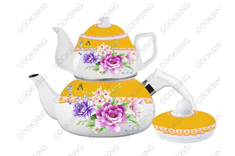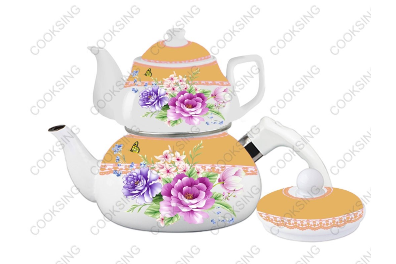 BK-807ED 0.75L Porcelain Teapot+2.3L Enamel Kettle Set With Dot Decals