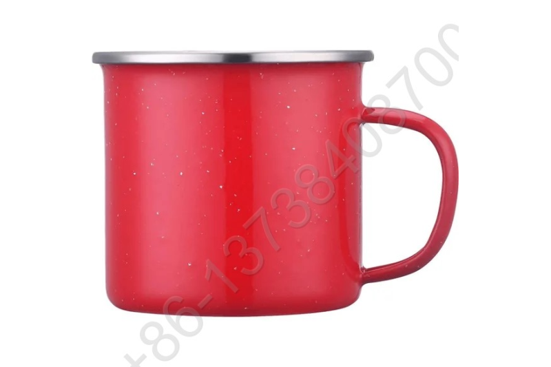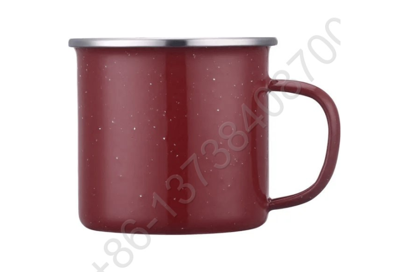 Customized Speckled Enamel Metal Camping Mug Cup With Stainless Rim