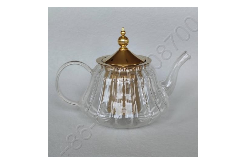 0.6L/0.8L/1.0L Luxury High Quality Tea Pot Gold Stainless Steel Filter And Lid Glass Handle Heat Resistant Glass Teapot