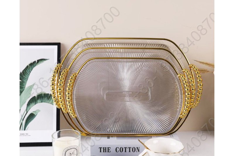 3 Pcs Set Luxury Fruit Tray Tea Tray Plastic Transparent Golden/Silver Edge Storage Plate Multifunctional Household Tray