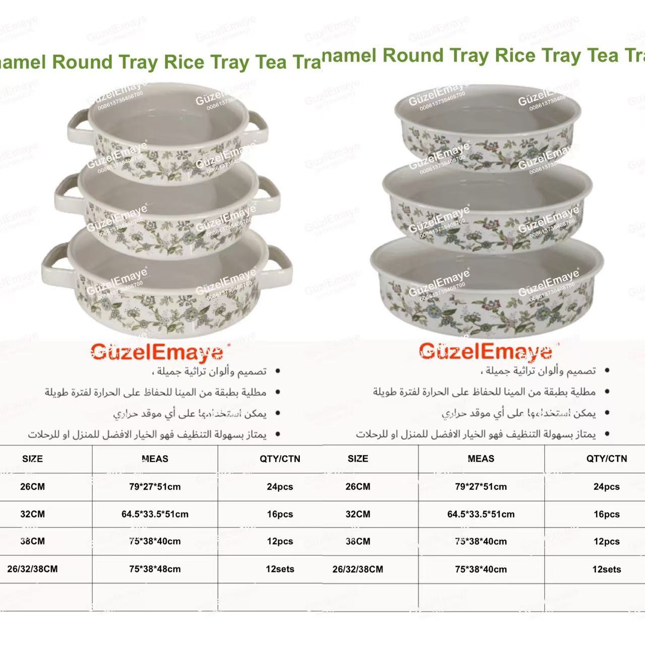 - Description: 3-Pack 26cm-32cm-38cm Enamel Roasting Pan Set Round Deep Baking Pans Oven Trays10"/12"/14" Cake Pans Pizza Pan Cookie Baking Sheets Oven Trays
