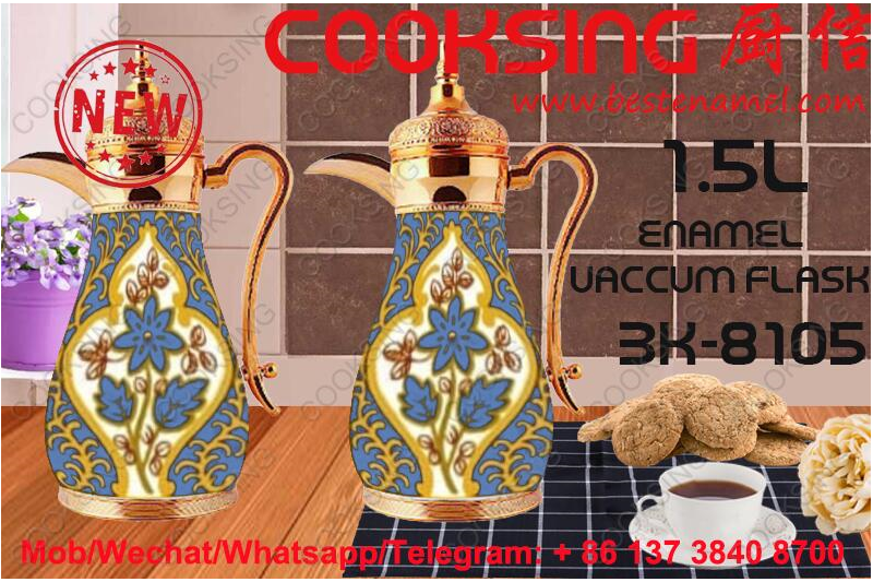 1.5L Colorfull Enamel Vacuum Flask With Golden Decals