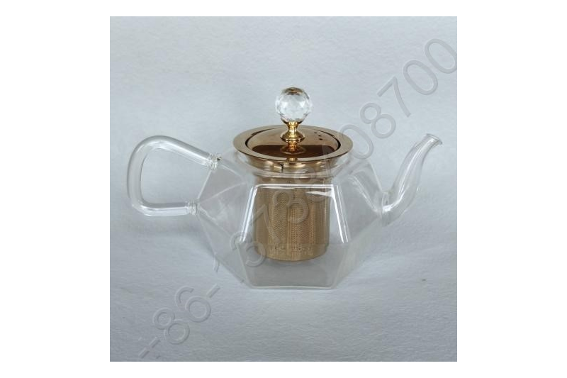 0.6L/0.8L/1.0L Luxury High Quality Tea Pot Gold Stainless Steel Filter And Lid Glass Handle Heat Resistant Glass Teapot