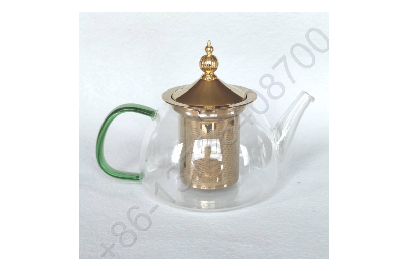 0.8L/1.0L Luxury High Quality Tea Pot Gold Stainless Steel Filter And Lid Glass Handle Heat Resistant Glass Teapot