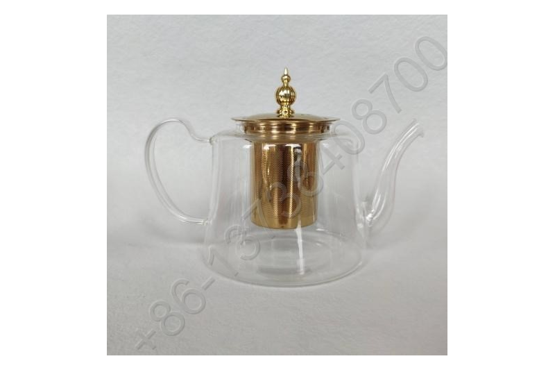 0.8L/1.1L Luxury High Quality Tea Pot Gold Stainless Steel Filter And Lid Glass Handle Heat Resistant Glass Teapot