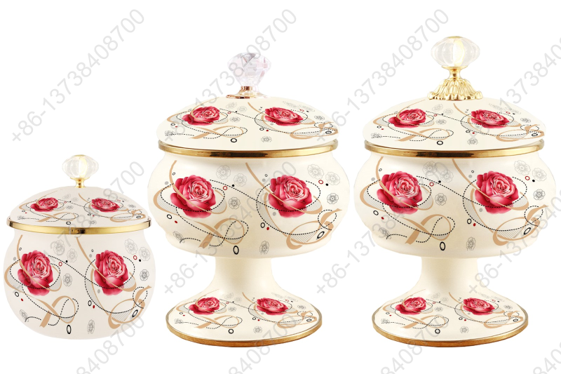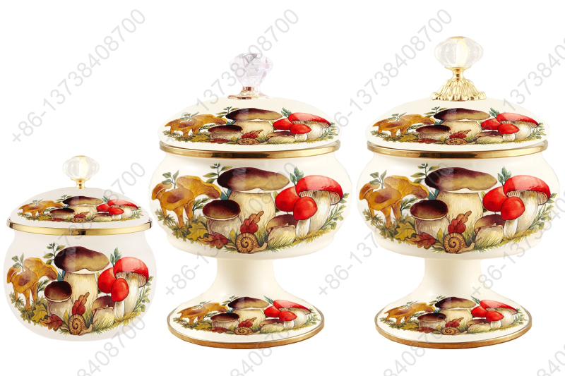 Home Luxury Enamel Candy Jar Multi-Functional Food Container Enamel Can Enamel Sugar Pot Household Fruits Basket