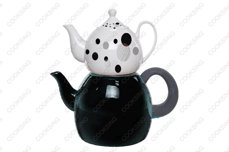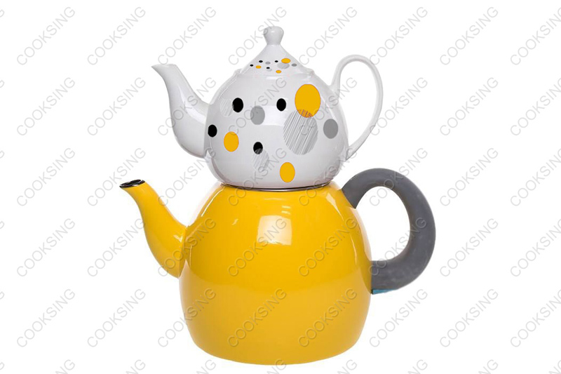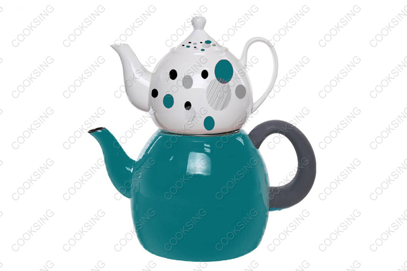 BK-3207D 1.0L Colorful Porcelain Teapot +3.2L Colorful Enamel Kettle With Black Bakelite Handles