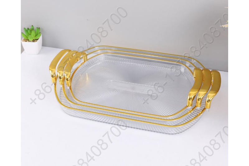 3 Pcs Set Luxury Fruit Tray Tea Tray Plastic Transparent Golden/Silver Edge Storage Plate Multifunctional Household Tray