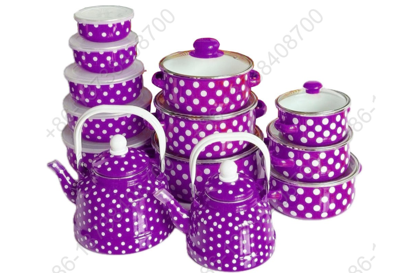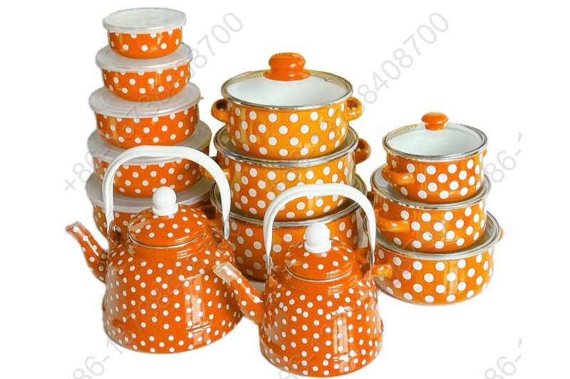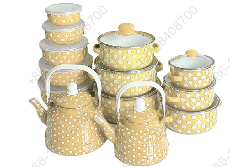 10 pcs Belly Shape Enamel Casserole Pot + 2pcs Enamel Kettle +3 pcs Enamel Basin + 1 pcs Enamel Bowl