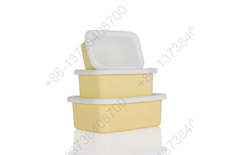 0.43L/0.9L/1.5L Enamel Storage Bowl Enamel Food Container Box with Lid Rectangular Shape
