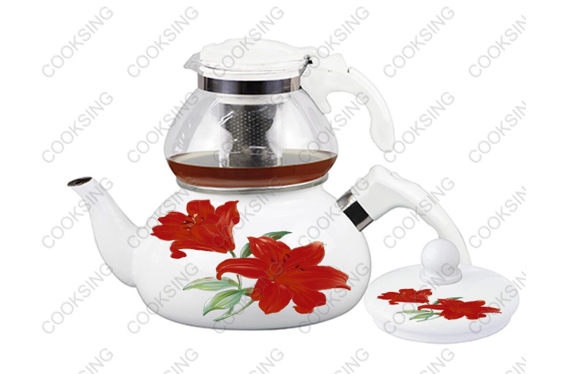 BK-507WGD 0.75L Glass Teapot+2.3L Enamel Kettle With Bakelite Handle And Decals Flower