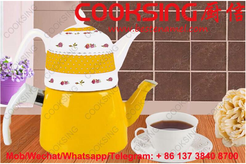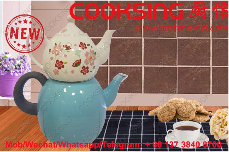 BK-3207DE 1.0L Porcelain Teapot With Decals Flower+3.2L Colorful Enamel Kettle With Black Bakelite Handles