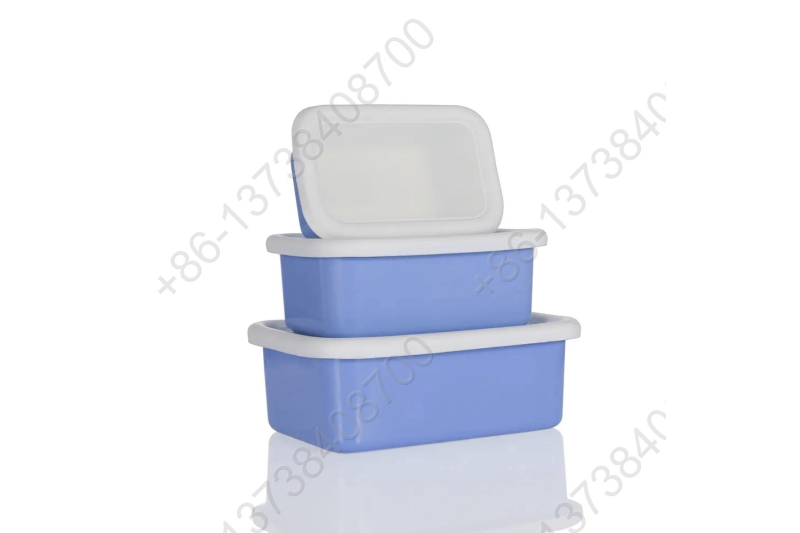 0.43L/0.9L/1.5L Enamel Storage Bowl Enamel Food Container Box with Lid Rectangular Shape