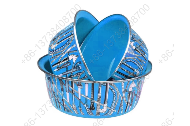 18/20/22/24/26cm 5 Pcs Enamel Casserole Pot With Decal Designs And Enamel Cover & Golden Knobs & Rim