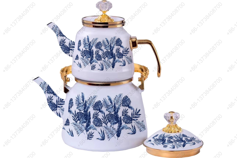 1.5L/ 18/20/22/24/26cm 6Pcs Enamel Casserole Set With Decal Designs And Enamel Cover & Golden Knobs & Rim